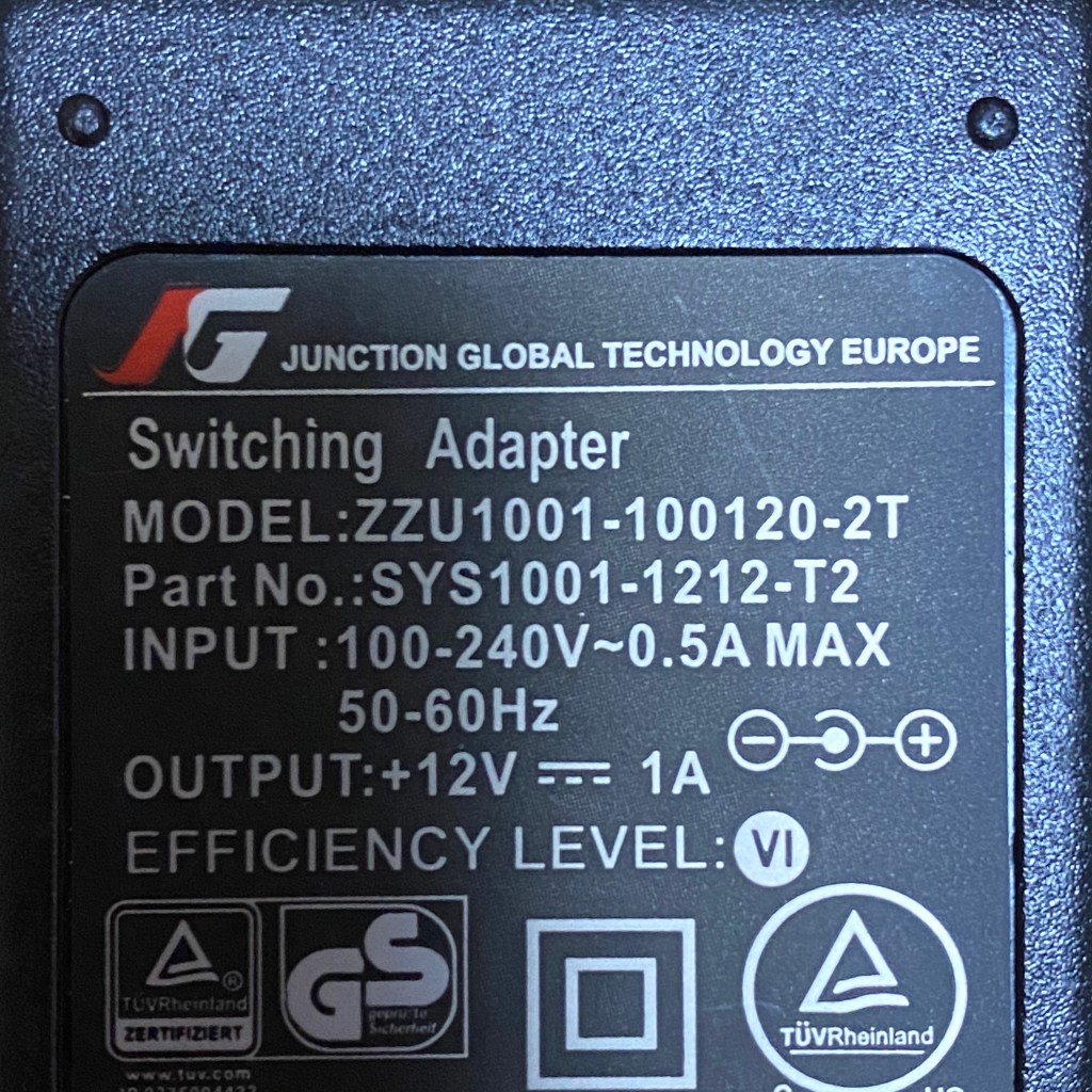 12V 1A、センターマイナス