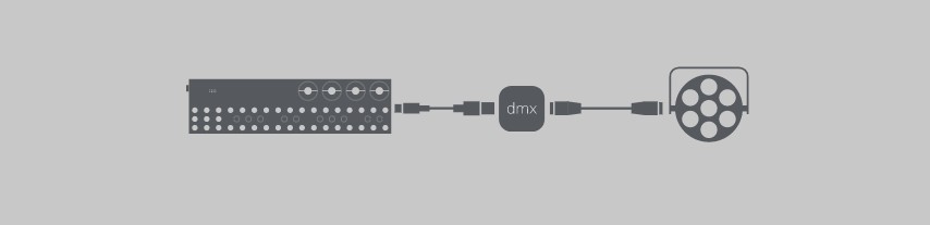 OP-ZとDMXはUSBケーブルで、DMXと灯体はDMXケーブルで繋ぐのね