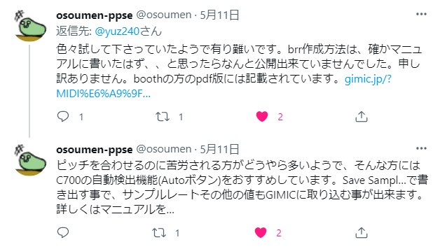 osoumen氏からReplyがあったので